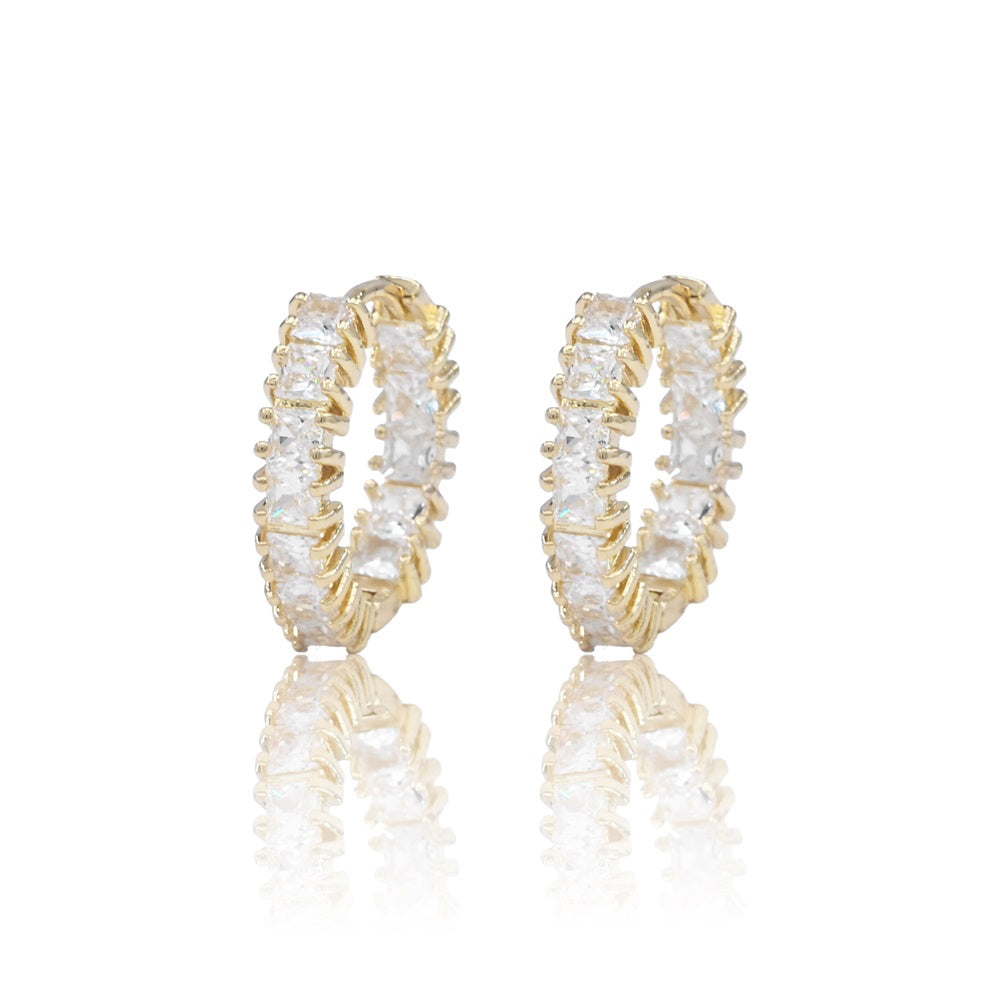 Add timeless sparkle with these gold-dipped CZ huggie hoop earrings. A refined cluster of brilliant stones creates effortless elegance, light enough for daily wear, radiant enough for evening style.