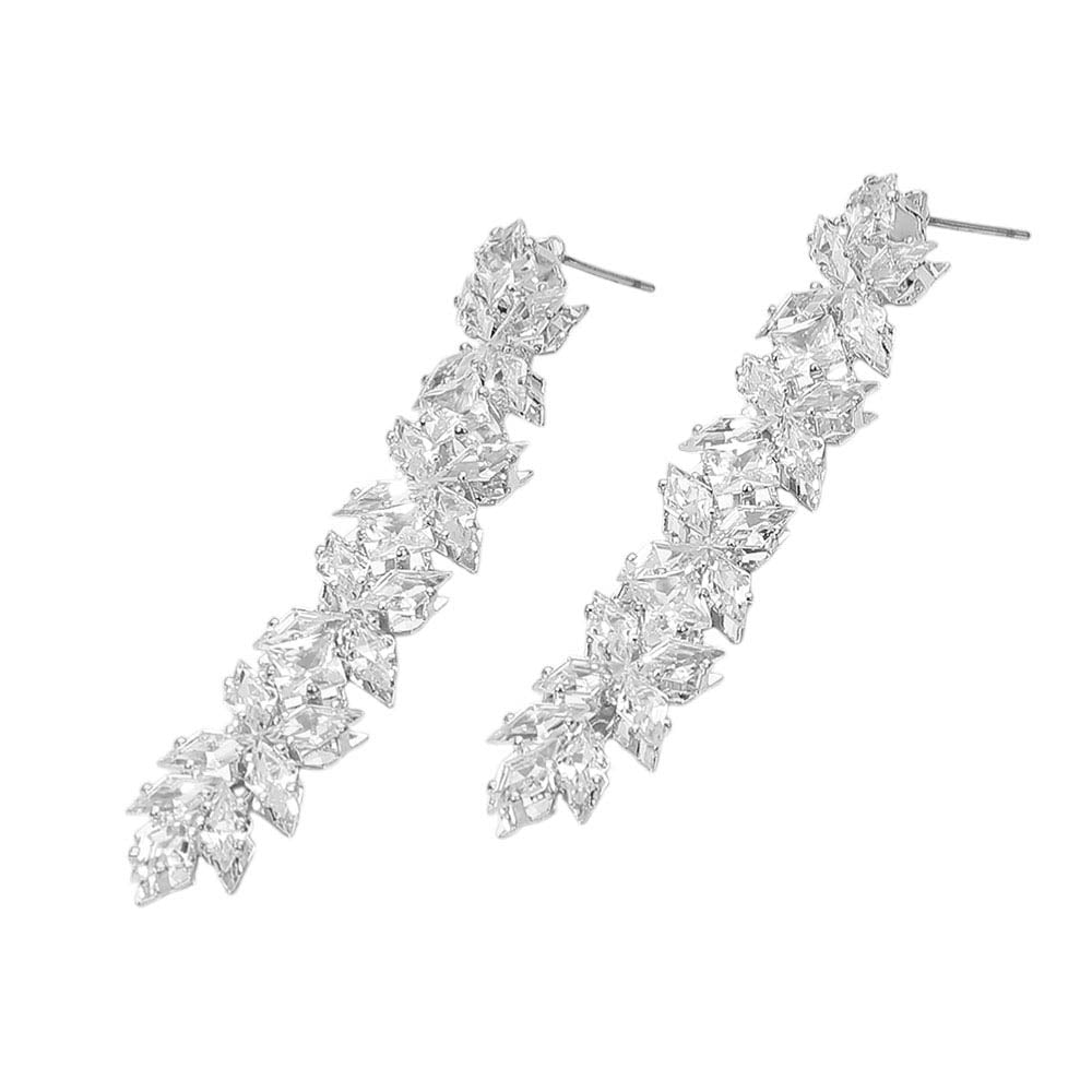 Shine with sophistication in these Marquise CZ Vine Drop Earrings. Featuring a cascading cluster of leaf-inspired cubic zirconia stones, this elegant design delivers timeless sparkle and refined glamour. Perfect for weddings, evening wear, or any special occasion, these earrings add a radiant finishing touch to every look.